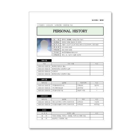 Page1 : 이력서 PERSONAL HISTORY (앞)
