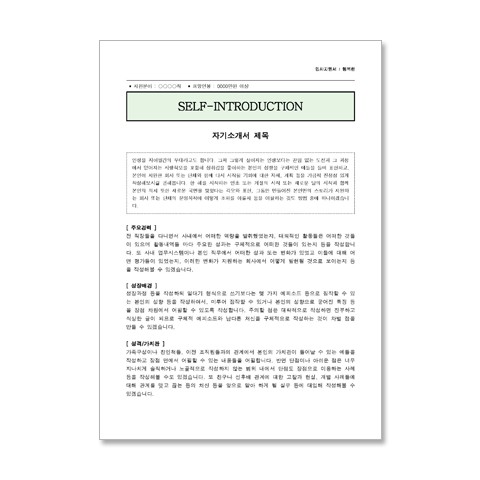 용도 개인 취업활동, 이력서 및 자기소개서 세트